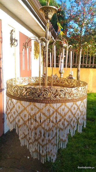 Candeeiro vintege com missangas de vidro.