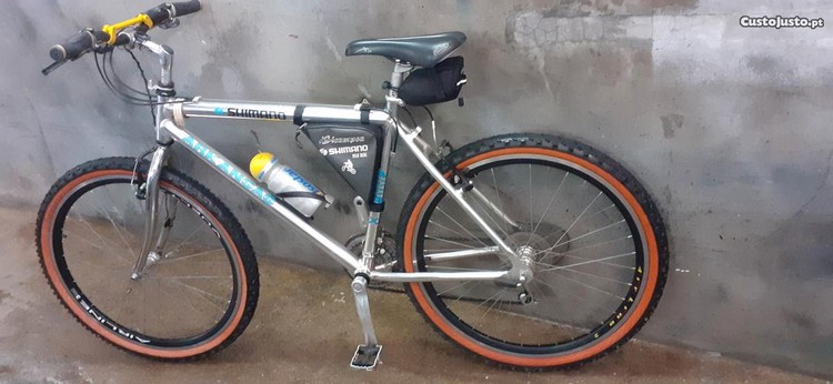 de travões e mudanças são SHIMANO, tem aros de roda AIRLINE.