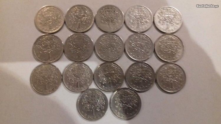 17 moedas de 1$00 de alpaca, todas com datas diferentes