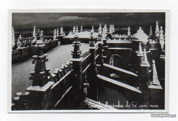Postal ilustrado. Postal fotográfico. Pináculos da Sé com neve.