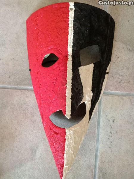 Máscara artesanal de Caretos, pintada à mão. Uma peça única e original, com um design peculiar.