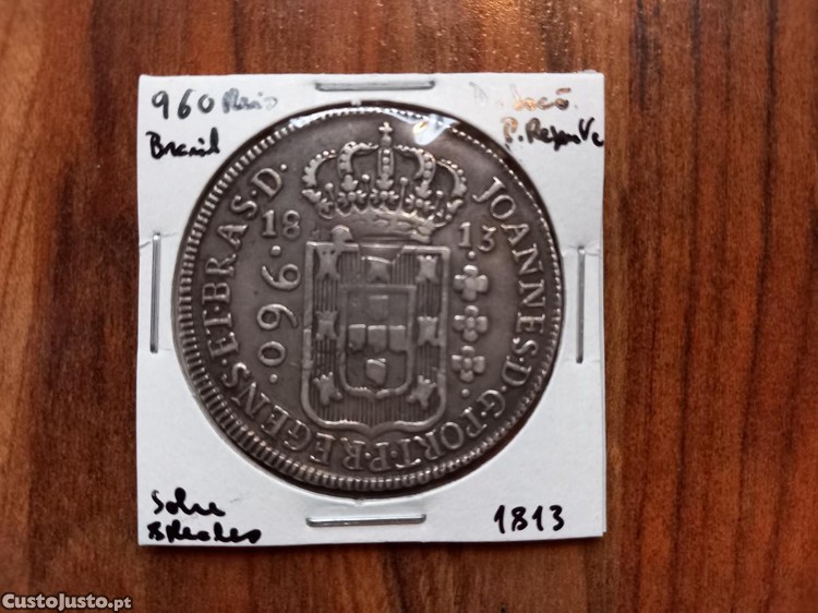 Preço: 205 €Moeda 960 Reis 1813 D. João P. Reg. Brasil S/8 Reales