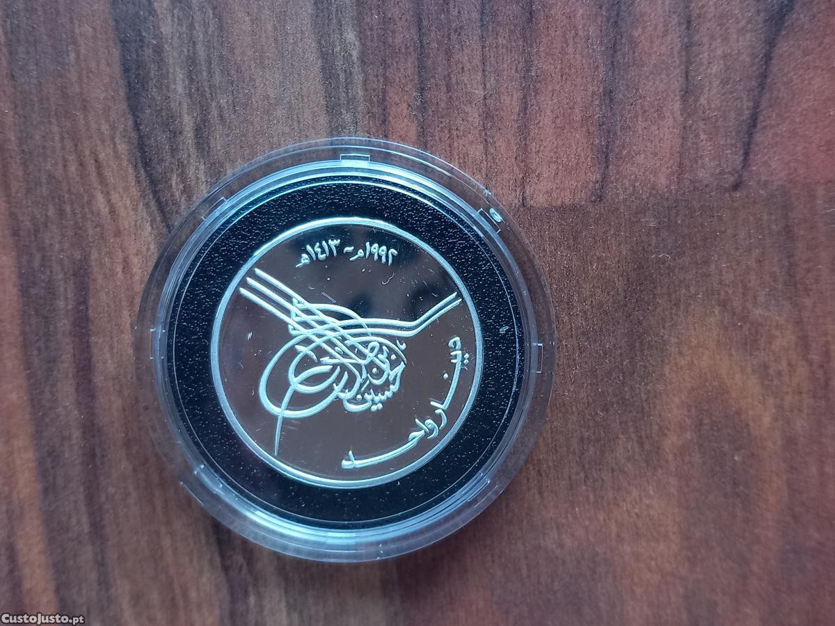Moeda Dinar Jordânia 1992 prata proof em caixa, 4900 exemplares