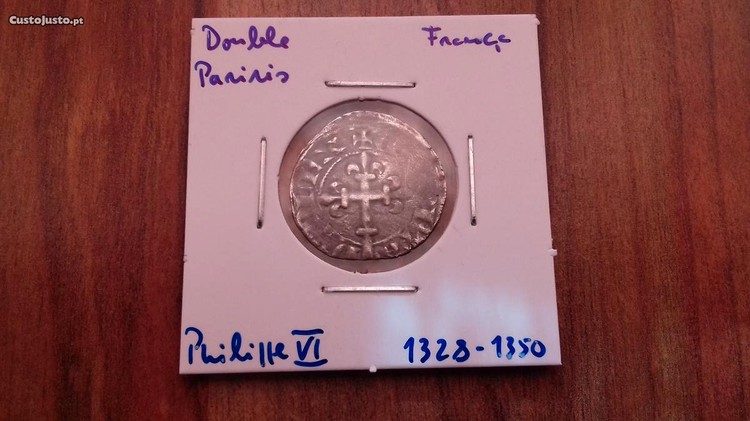 Moeda Double Parisis França Philippe VI 1328 , moeda templária