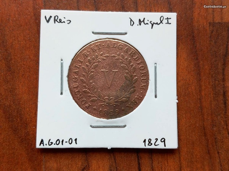 Preço: 69 €Moeda V Reis 1829 D. Miguel I