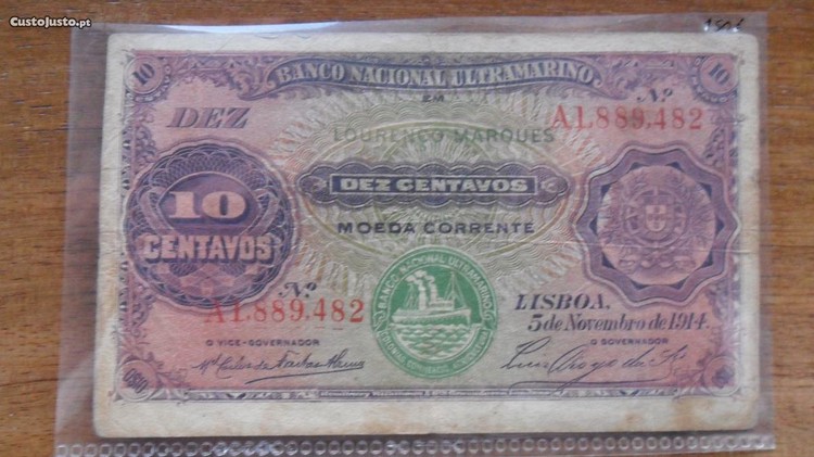 Nota 10 Centavos 1914 Lourenço Marques
