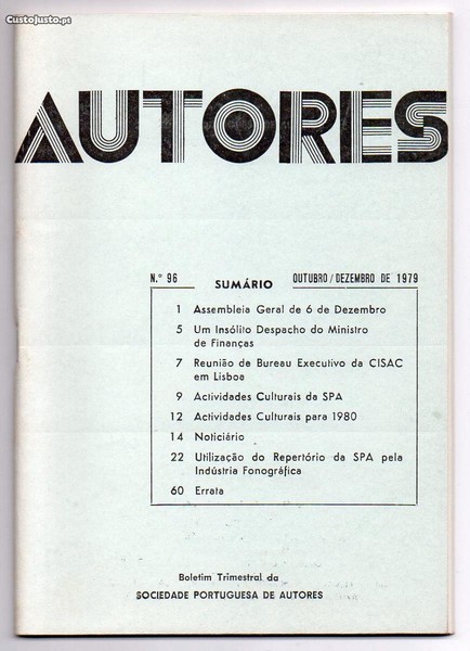 Preço: 4 €Boletim da Sociedade Portuguesa de Autores, n.º 96