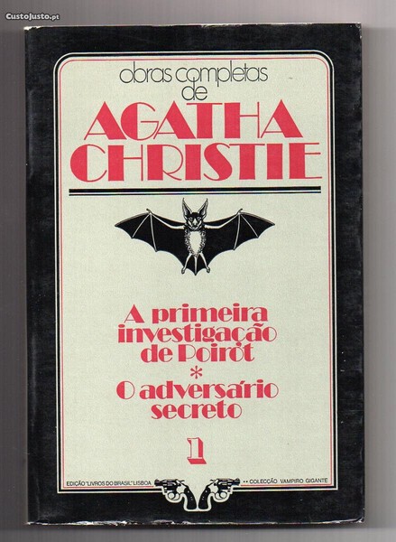 A primeira investigação de Poirot / O adversário secreto Agatha Christie Livros do Brasil, Lisboa, s. d. [c. 1980]. 21 cm. 480 páginas. Trata-se do n. 1 da Colecção Vampiro Gigante. Exemplar bem conservado. 7 EUR(já inclui portes de correio e envio em envelope almofadado). Artigo sujeito a um desconto de 2 euros em compras conjuntas. 4AB183