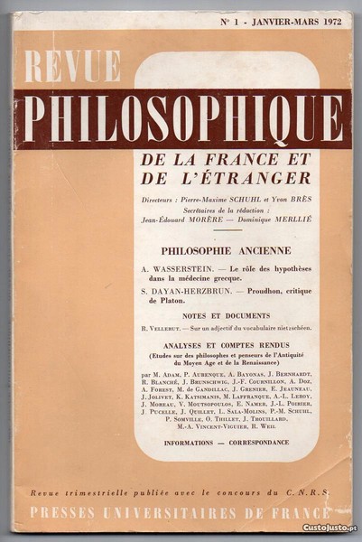 24 cm. 128 páginas. Exemplar com alguns sinais de manuseamento, mas em bom estado geral de conservação. Filosofia. Texto em francês.