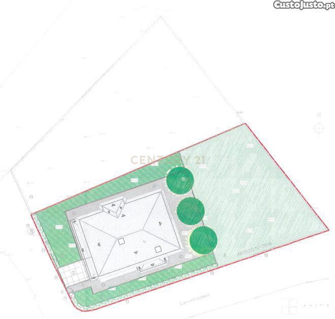 No presente projecto o R/C podia ser uma garagem para vários carros e arrumos. O 2º piso está projectado para 3 quartos com 2 WC, sendo um quarto com casa de banho privativa. Há possibilidades de alterações ao projecto e maior facilidade na sua execução pois tanto o primeiro piso como o segundo estão amplos.