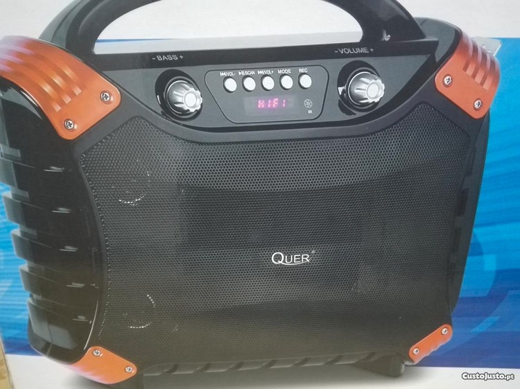 Coluna portátil compacta de 30W RMS com reprodutor MP3, FM e Bluetooth e 1 microfone s/ fios incorporados, NOVA com as seguintes características: