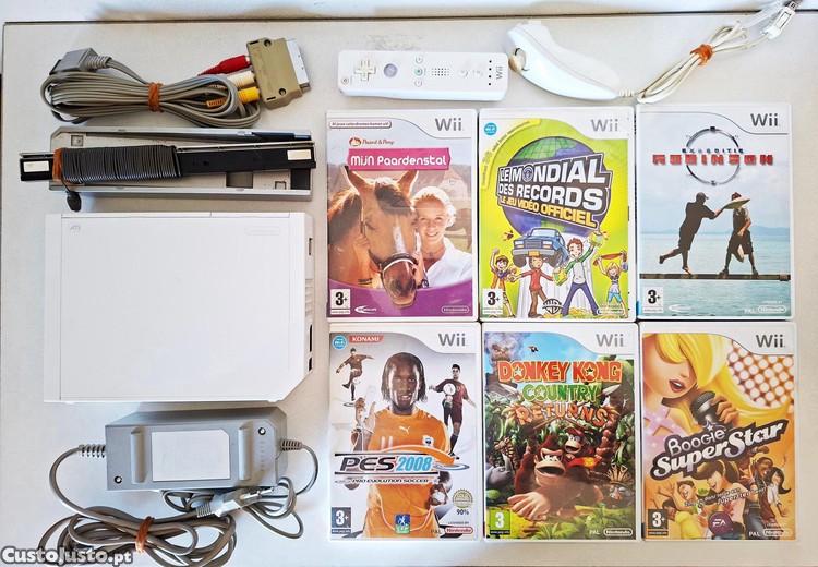 Este modelo da Nintendo Wii tem retro compatibilidade com os jogos da Nintendo Game Cube, ou seja , adquire duas consolas numa só.