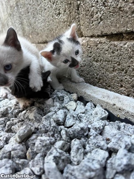 1 fêmea (preto) e 1 macho (bege). Já comem ração e são muito dados a pessoas. É urgente dá-los.