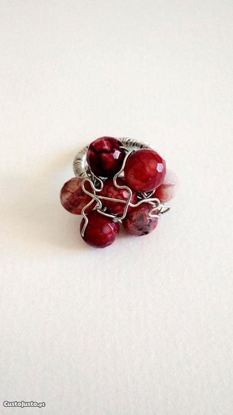Anel com pedras naturais vermelhas, aço inoxidável. Estilo boho. Excelente qualidade.