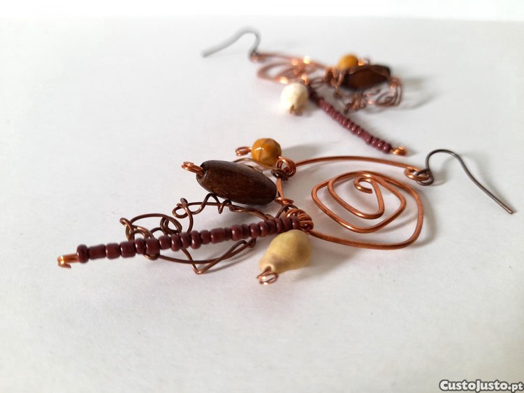 Brincos primitivos com búzios, bijuteria exclusiva, existe apenas este par, em cobre, cristais, búzios, contas de madeira. Nunca usado.