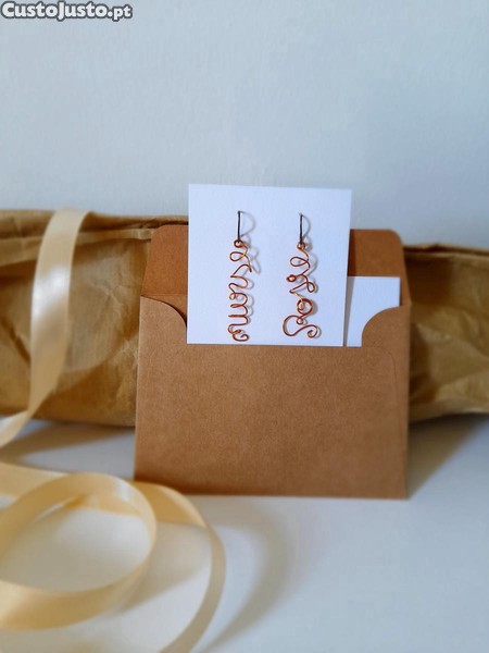 Brincos personalizados com nome, palavras ou frases curtas. Estado novo com etiquetas.