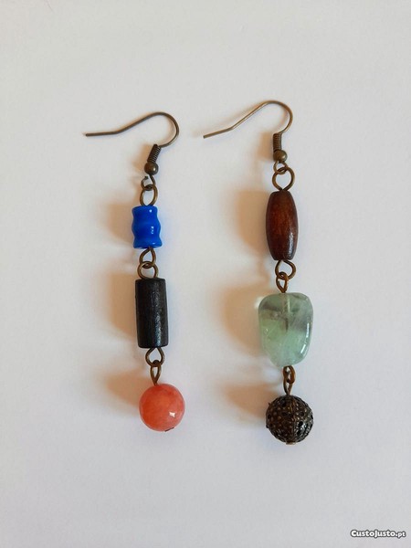 Preço: 17 €Brincos desiguais country com pedras semipreciosas