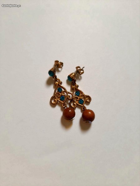 Preço: 2 €Brincos dourados com brilhantes azuis