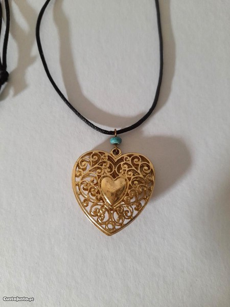 Preço: 4 €Colar fio com pendente de coração dourado estilo filigrana