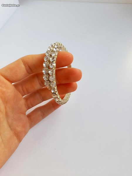 Bracelete ajustável com imitação de diamantes, strass para noiva, dama de honor, cerimónias. Em muito bom estado, mantém todos os brilhantes.