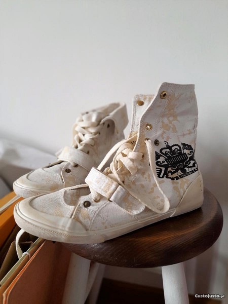 Sapatilhas tipo all star creme abotinadas para o exterior tamanho 38