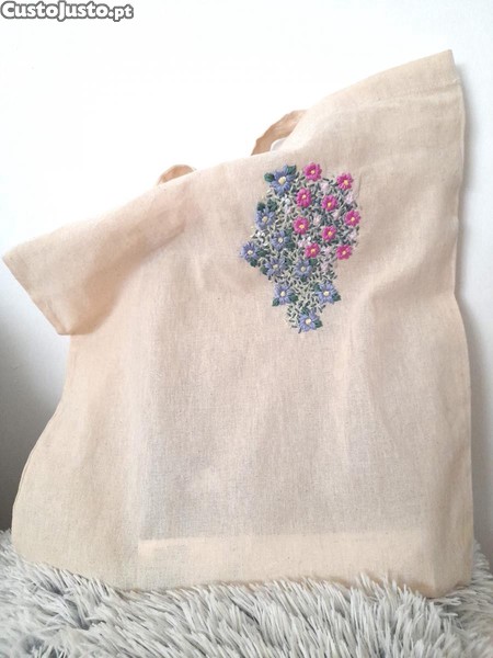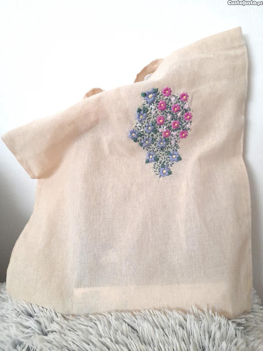 Tote bag XL 100% algodão bordada à mão nova