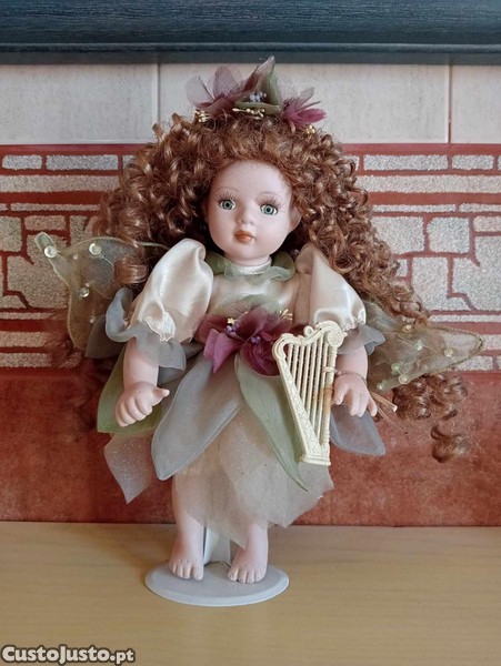 Boneca de Porcelana em perfeitas condições (não tem nada partido - apenas o cabelo está erriçado): Fada com Harpa.