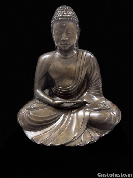Estátua autêntica e única de Buda, feita à mão na Tailândia e adquirida por volta de 1995. A imagem representa Buda em dhyana mudra uma pose clássica de meditação com as mãos pousadas no colo, símbolo de paz interior, iluminação e equilíbrio.