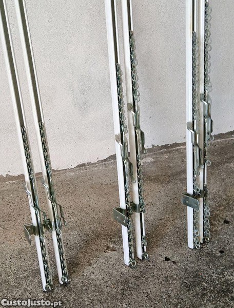 Vendo, juntas ou separadas, três réguas duplas completas, em metal, para colocar cortinados em sanefas.