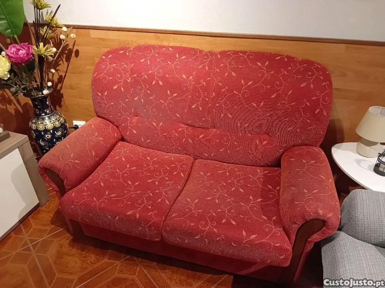 . Conjunto de sofás 2+3 lugares em tecido vermelho.