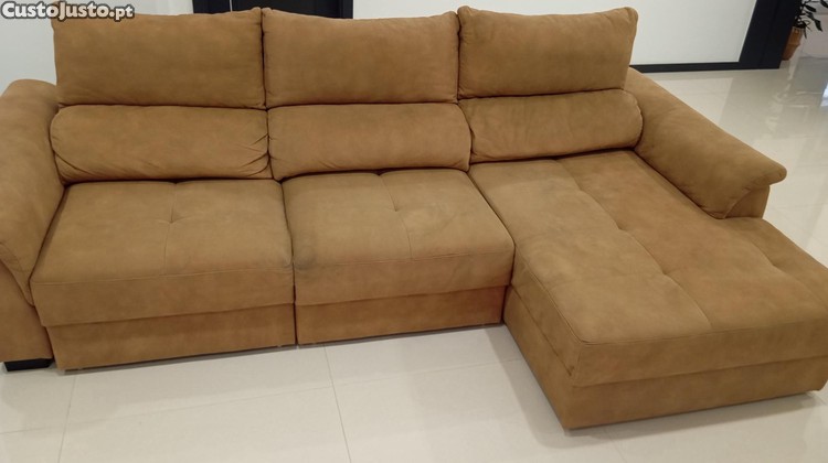Sofá de cor "camel", em tecido e em perfeitas condições;