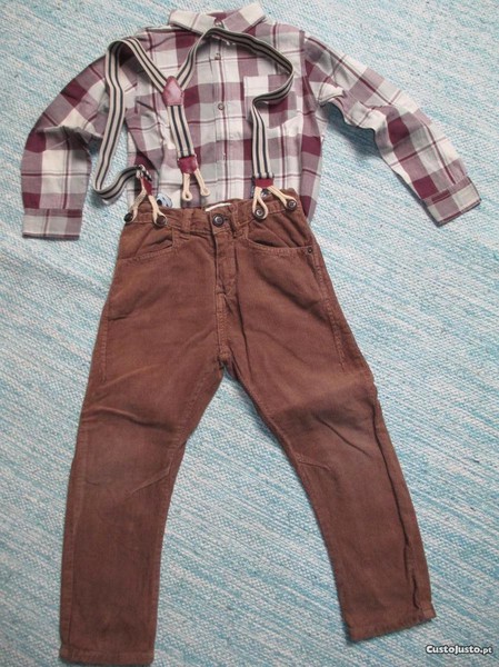 Conjunto calças / camisa / suspensórios Zara 4 anos 104cm , em muito bom estado. Oferta portes.