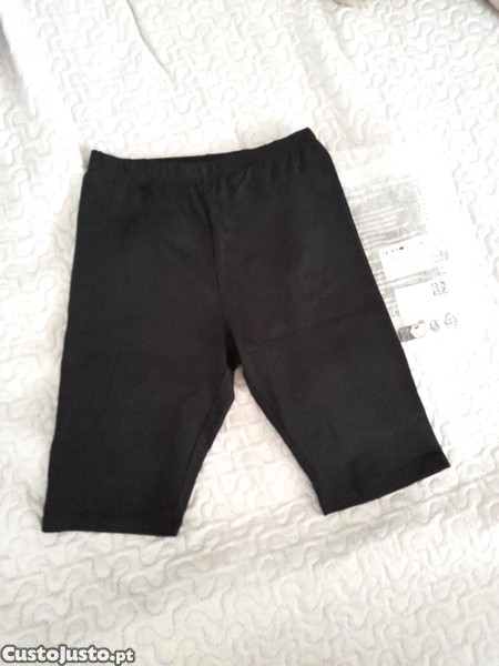 Calções justos 95% algodão e 5% elastano, tamanho para criança/adolescente de 13 ou 14 anos, ou 164cm de altura, equivale a um XS de senhora. Completamente novos, nunca usados, estão na embalagem original. Marca H&M.