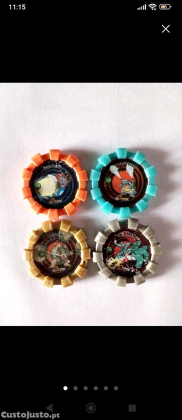 Tenho 4 tazos Pokémon da coleção Boinx disponíveis.