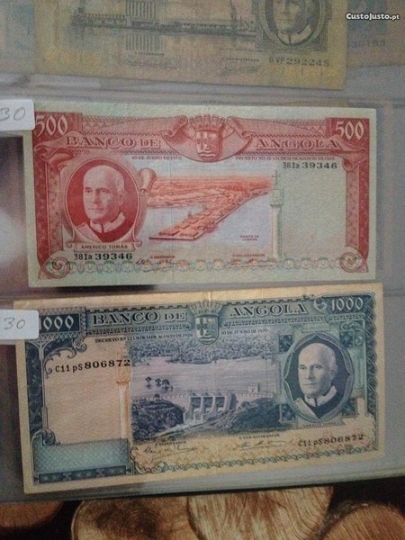 ANGOLA 2 NOTAS DE AMÉRICO TOMÁS Muito Bem Conservadas (MBC) 500$00 e1000$00 conforme as fotos. Os portes são por conta do comprador, posso entregar em TAROUCA. Veja os meus outros anúncios.