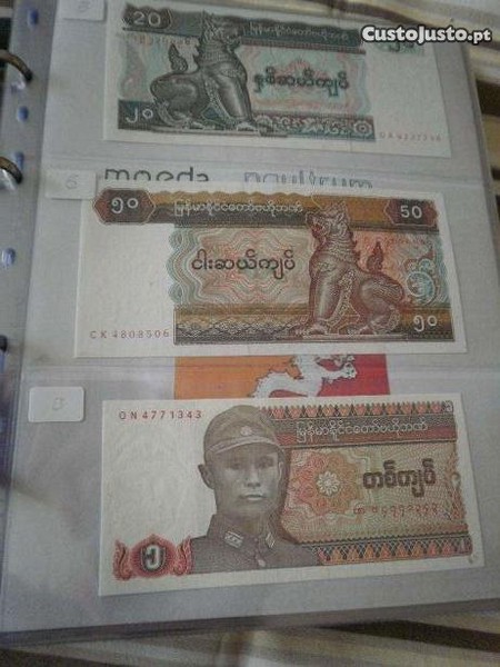 BURMA ( MYANMAR ) 13 Notas das quais 11 São Notas NOVAS - NÃO CIRCULADAS e 2 bem conservadas a nota de 1 KYAT tem dois furos de agrafe e a nota de 75 KYATS tem uma escrita a caneta. Conforme as fotos, Estas notas fazem parte da minha coleção de que me estou a desfazer. Os portes são por conta do comprador, posso entregar em mão em TAROUCA. Veja os meus outros anúncios.