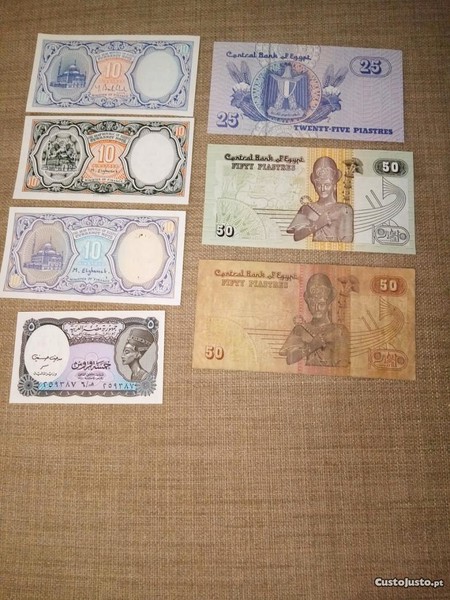 EGYPT 7 Notas 6 SÃO NOVAS - NÃO CIRCULADAS E 1 MAL CONSERVADA conforme as fotos. Estas notas fazem parte da minha coleção de que me estou a desfazer. Os portes são por conta do comprador, posso entregar em mão TAROUCA. Veja os meus outros anúncios.