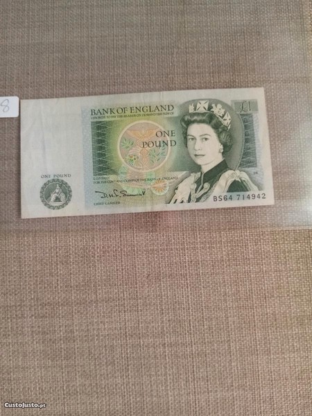 INGLATERRA 1 NOTA de 1 POUND CIRCULADA mas em muito bom estado conforme fotos. Esta nota faz parte da minha coleção de que me estou a desfazer. Os portes são por conta do comprador, posso entregar em mão em TAROUCA. Veja os meus outros anúncios.