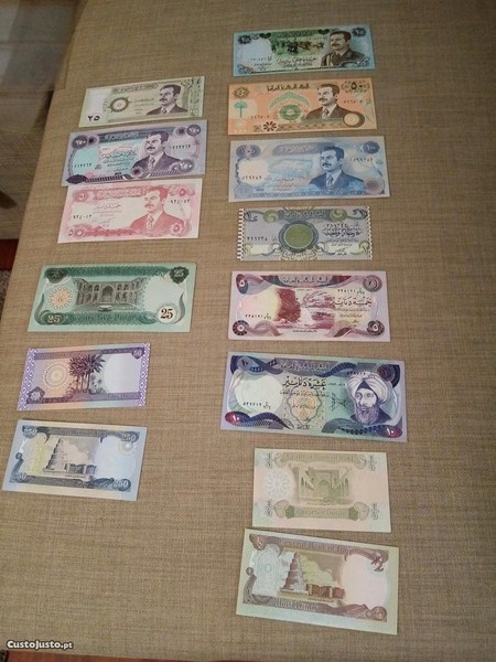 IRAQUE 14 NOTAS 12 SÃO NOVAS - NÃO CIRCULADAS 2 como novas conforme as fotos, de várias Séries. Estas notas fazem parte da minha coleção de que me estou a desfazer. Os portes são por conta do comprador, posso entregar em mão em TAROUCA. Veja os meus outros anúncios.