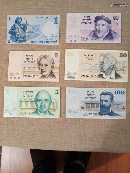 ISRAEL 6 NOTAS 4 SÃO NOVAS - NÃO CIRCULADAS 1 de 1958, 1 de 1973 e 2 de 1978, e 2 de 1973 como novas conforme as fotos, de duas Séries. Estas notas fazem parte da minha coleção de que me estou a desfazer. Os portes são por conta do comprador mas posso entregar em mão em TAROUCA. Veja os meus outros anúncios.