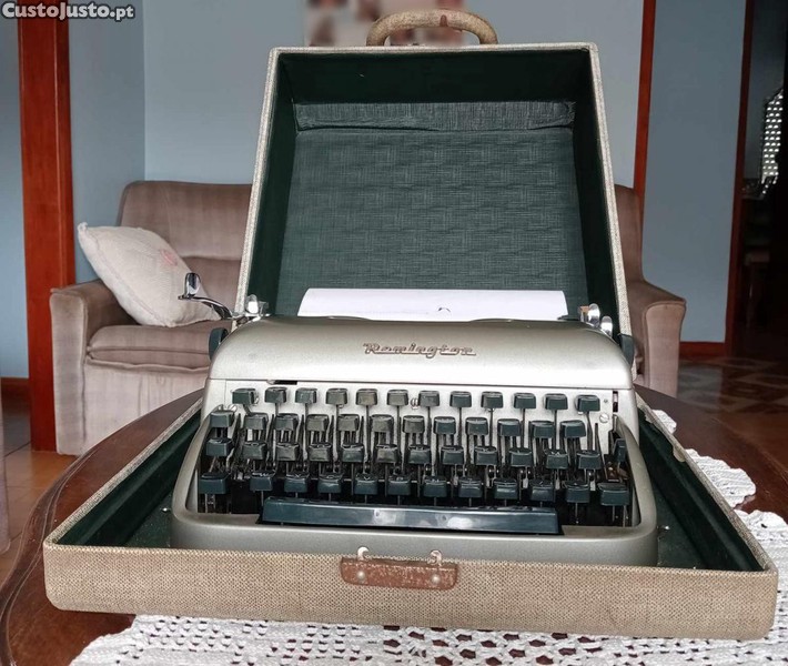 Artigo vintage e fabricado por volta de 1950. Encontra-se funcional, no entanto, é possível que necessite de trocar a fita (possibilita escrever em preto ou vermelho). A mala, que permite transportar a máquina, foi adquirida aquando a mesma, apresentando sinais evidentes do passar do tempo. Em falta está a chave para fechar a mala. Ainda assim, o sistema de fecho encontra-se funcional, pelo que a mala só abre se o fecho for devidamente pressionado.