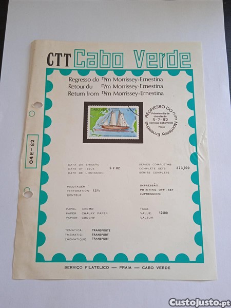 Folha CTT Cabo Verde Serviço Filatelico - Praia - Cabo Verde 04E - 82