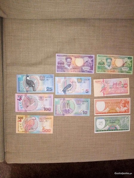 SURINAME 10 NOTAS NOVAS - NÃO CIRCULADAS em 2 Séries conforme as fotos. Estas notas fazem parte da minha coleção de que me estou a desfazer. Os portes são por conta do comprador, posso entregar em mão em TAROUCA. Veja os meus outros anúncios.