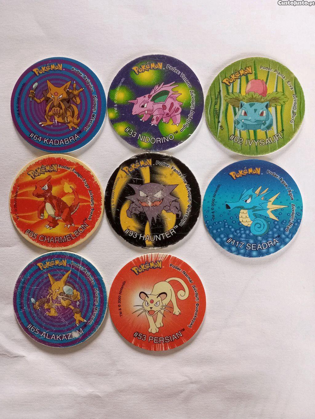 Vendo 8 tazos originais Pokémon da Matutano, ideais para colecionadores ou fãs da saga. Cada tazo está avaliado conforme o seu estado de conservação: