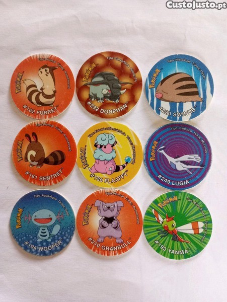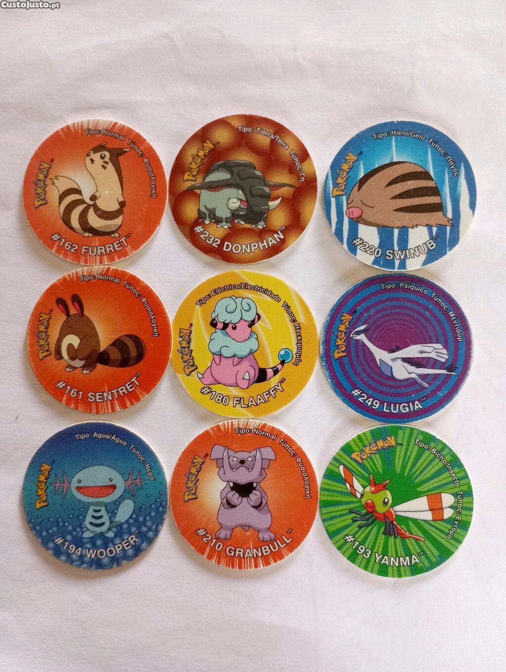 Vendo 9 tazos originais Pokémon da Matutano, ideais para colecionadores ou fãs da saga. Cada tazo está avaliado conforme o seu estado de conservação: