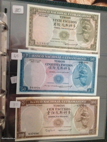 TIMOR 3 NOTAS NOVAS NÃO CIRCULADAS c/ pequenas manchas de humidade conforme as fotos. Estas notas fazem parte da minha coleção de que me estou a desfazer. Os portes são por conta do comprador, posso entregar em mão em TAROUCA. Veja os meus outros anúncios.