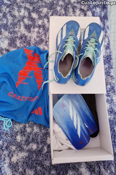 Preço: 150 €Chuteiras Adidas X Crazyfast+ SG, n 39 e caneleiras X League