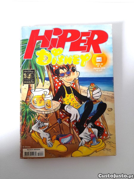Revista de banda desenhada, Hiper Disney, Ano 14, Número 8. Em ótimo estado. De Agosto 2002.