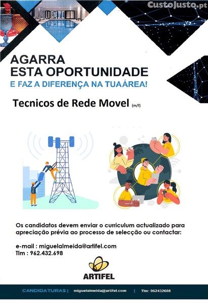 A ARTIFEL S.A. está a recrutar Técnicos de Rede Móvel para integrar a nossa equipa na região de Viseu. Se possui interesse em desenvolver a sua carreira na área das redes de 5G, não perca esta oportunidade!