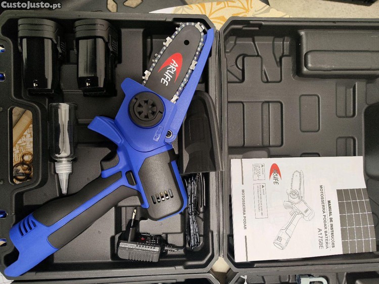Motosserra e Tesoura elétrica com duas baterias e acessórios com mala